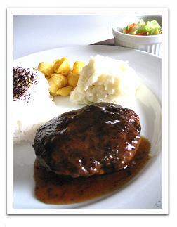 そして夕食も手料理で・・・メインに煮込みハンバーグ、野菜ソテー、生野菜サラダ、