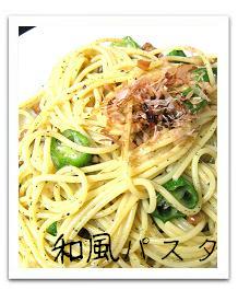 パスタに納豆、オクラ、シソ、鰹節、海苔をかけて出来上がり。